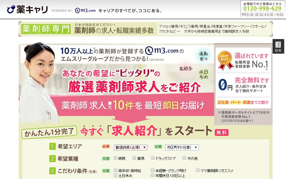 高収入転職なら「薬キャリ」と言われるほど、高額求人に強い薬剤師転職サイトです。